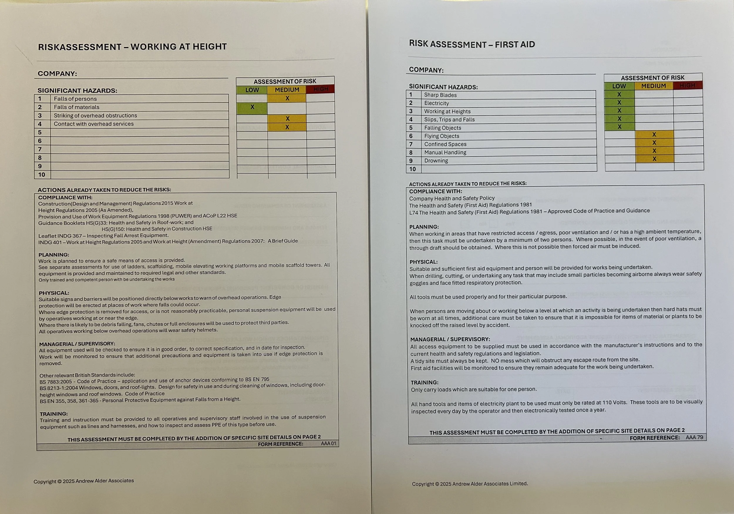 At Andrew Alder Associates we pride ourselves on being able to assist our clients in a wide range of capacity’s relating to health and Safety: